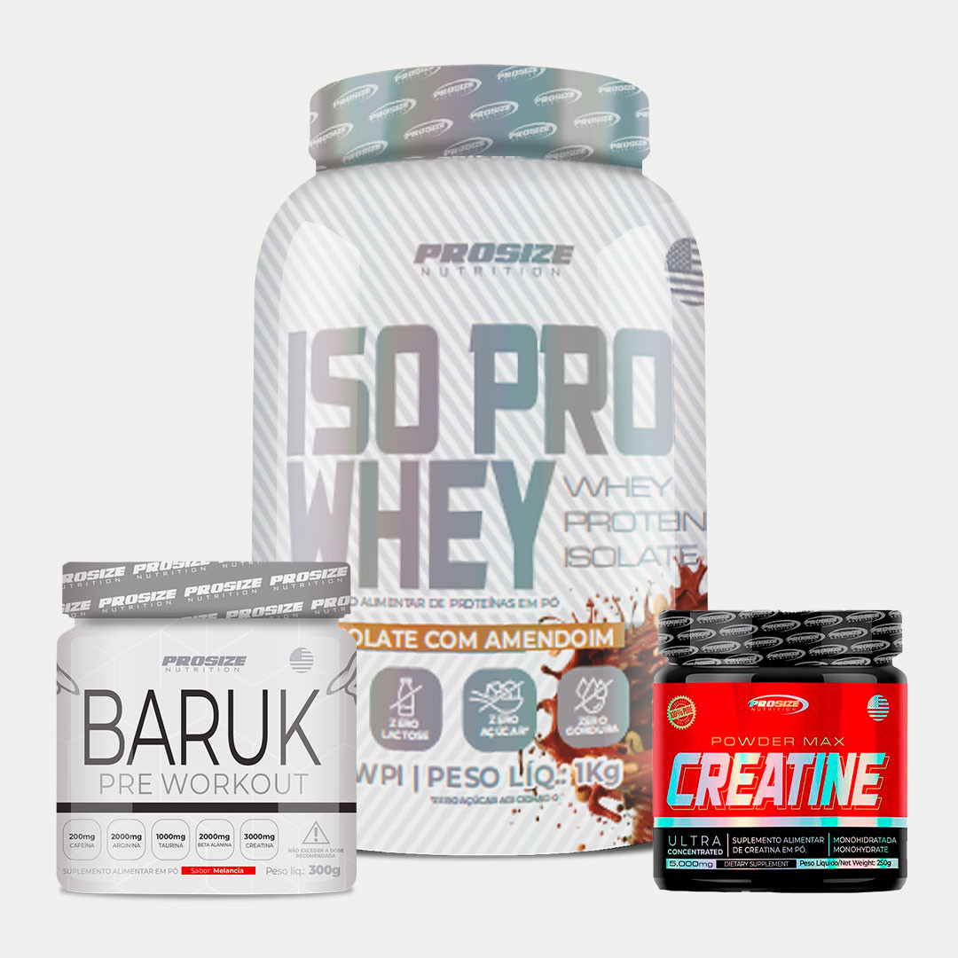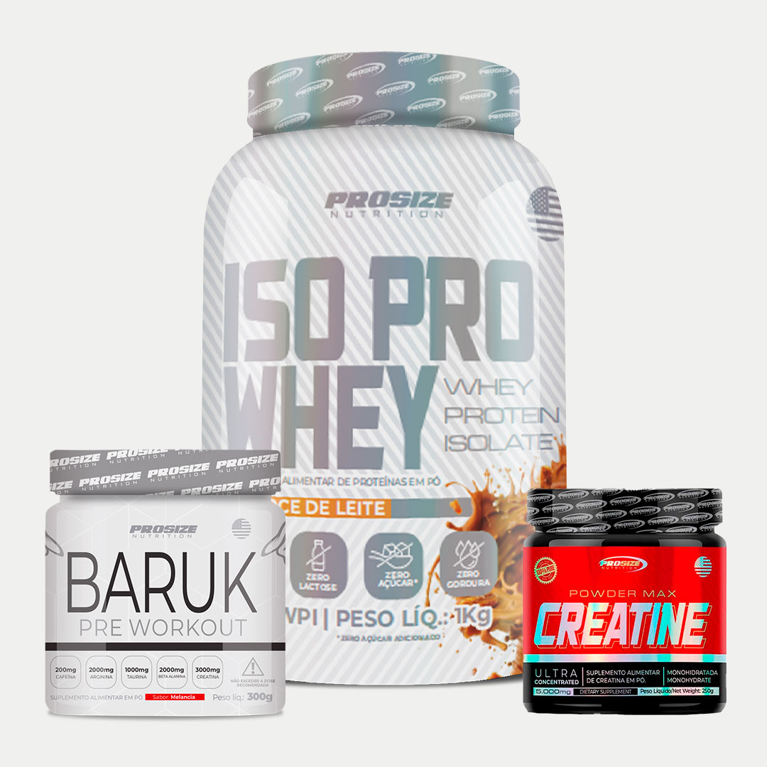 A combinação de Creatina Powder Max , Iso Pro Whey e o pré-treino Baruk da Pro Size Nutrition é ideal para quem busca maximizar a construção muscular, força e energia.